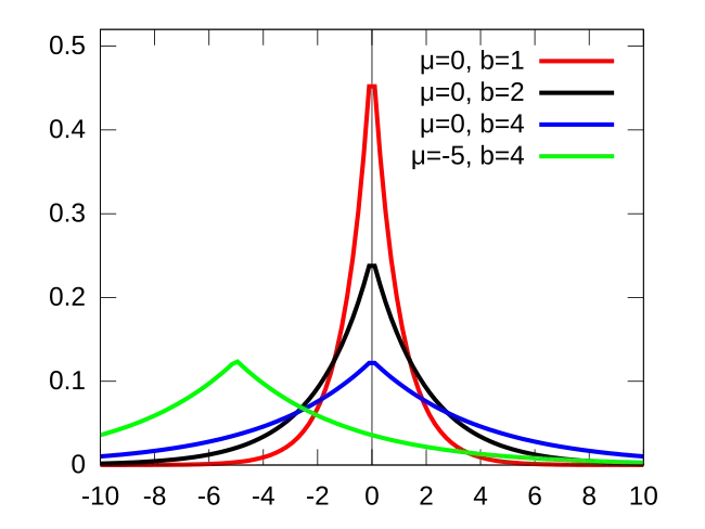 - Kinda like Normal Distribution.md but normal distribution is expressed in terms of the squared difference from the mean μ, the Laplace density is expressed in terms of the absolute difference from the mean