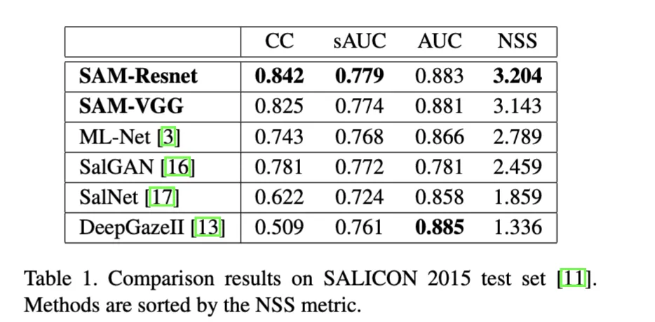 uses LSTM to compute an attention map. The feature map extracted by ResNet is input to attentive convolutional LSTM that focuses on the most salient regions of the input image to iteratively refine the predicted saliency map.
