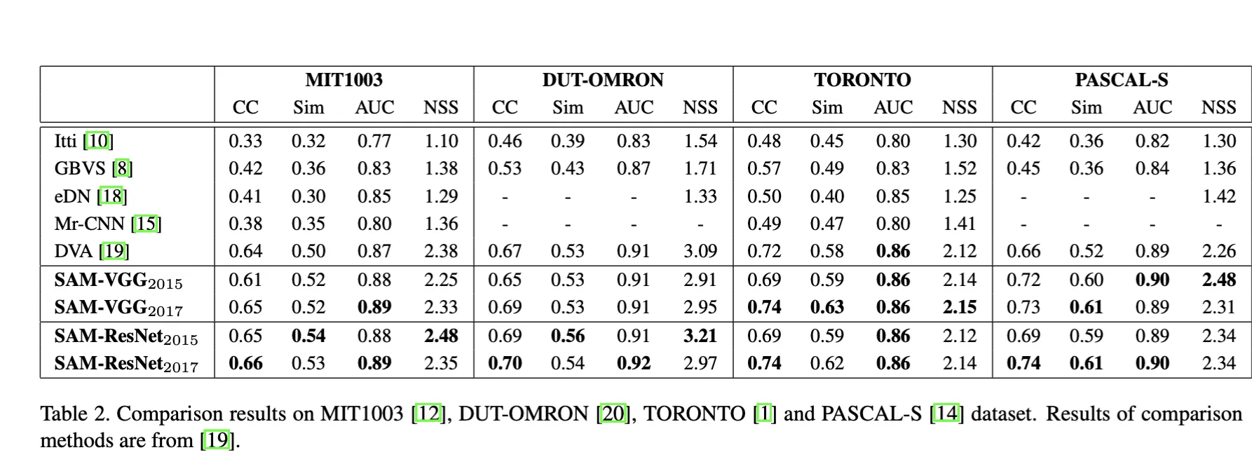 Thanks to this strategy, the predicted saliency maps are rescaled, for both versions, by a factor of 8 instead of 32 as in the original CNNs.