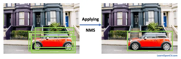 Non Maxima Supression IntersectionOverUnion(IoU)=(Target∩Prediction)/(TargetUPrediction) In our case using BBoxes, it can be modified to, IOU(Box1,Box2)=IntersectionSize(Box1,Box2)/UnionSize(Box1,Box2)