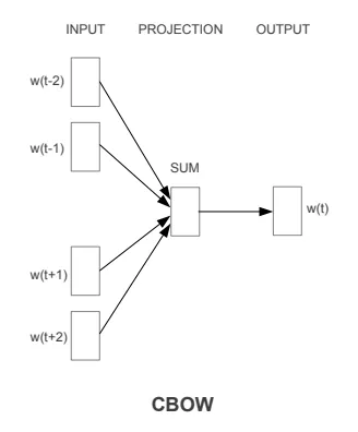 - Again, the projection weights that turn one-hot words into averageable vectors, of the same width as the hidden layer, are interpreted as the word embeddings.