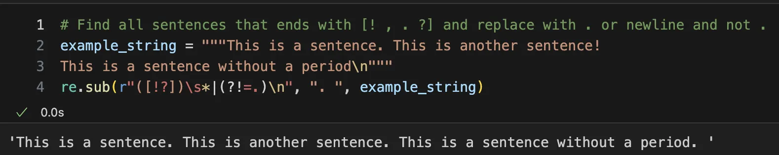 Find All Sentences that Ends with [! , . ?] and Replace with . or Newline and not .